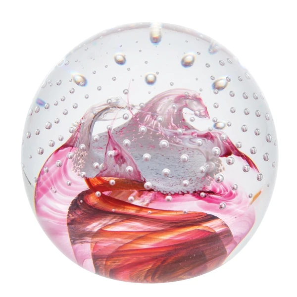 A dynamic swirl of ruby red glass fills this blown glass paperweight, conveying energy and celebration. Bright, vivid colour encapsulated in crystal makes a joyful congratulatory gift.